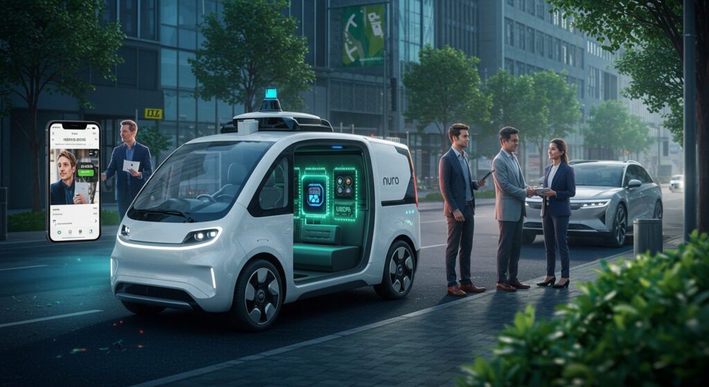Ferguson insiste sur les partenariats commerciaux pour scaler l’autonomie mondialement. Nuro vise des déploiements réels, pas juste des prototypes.